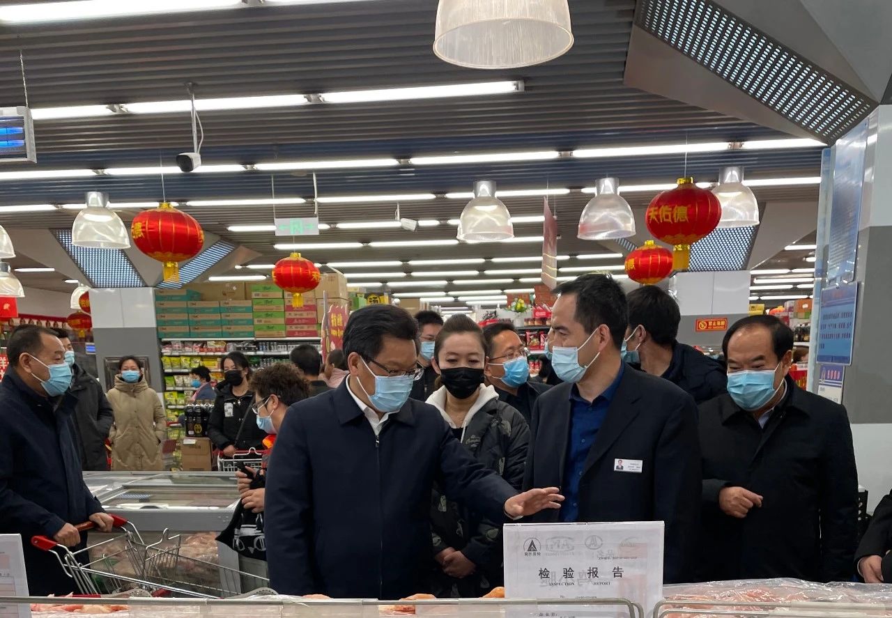 2月10日,甘肅省委副書記、省長任振鶴,甘肅省委常委、蘭州市市委書記李榮燦,甘肅省政府秘書長李志勛,甘肅省市場監(jiān)管管理局局長王忠習,蘭州市市長張偉文等省市領導一行調研指導春節(jié)保障供應及慰問超市一線員工。